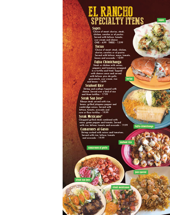 Welcome to El Rancho - Holland, a delightful Mexican restaurant nestled in the heart of Holland, MI. With an extensive menu that caters to every palate, El Rancho is renowned for its flavorful offerings and vibrant atmosphere. Signature dishes like the Filete Pescado and TBone Steak and Shrimp showcase a perfect blend of fresh ingredients and traditional Mexican cooking techniques.